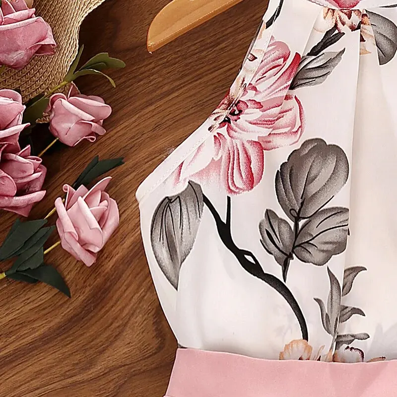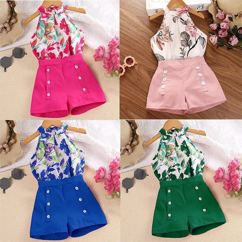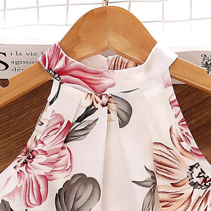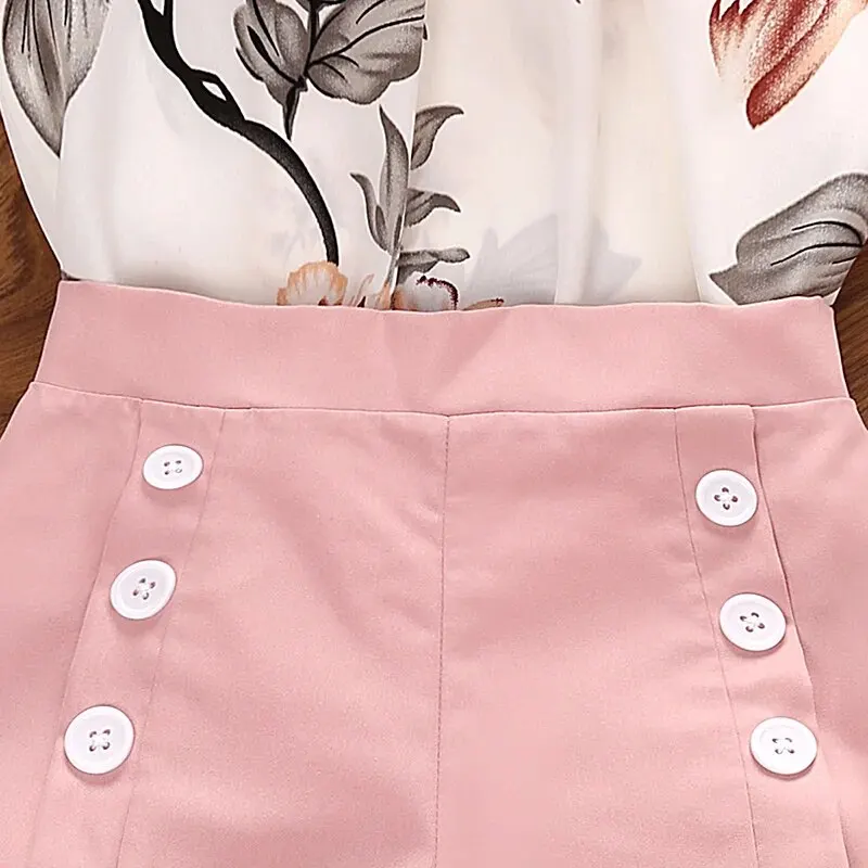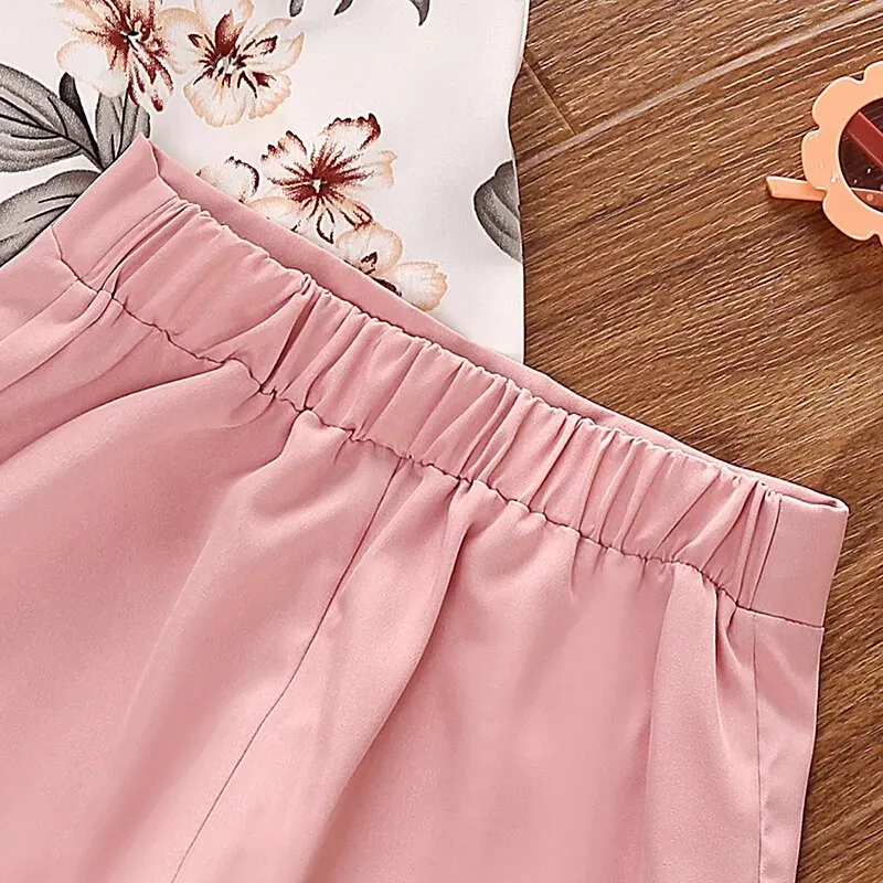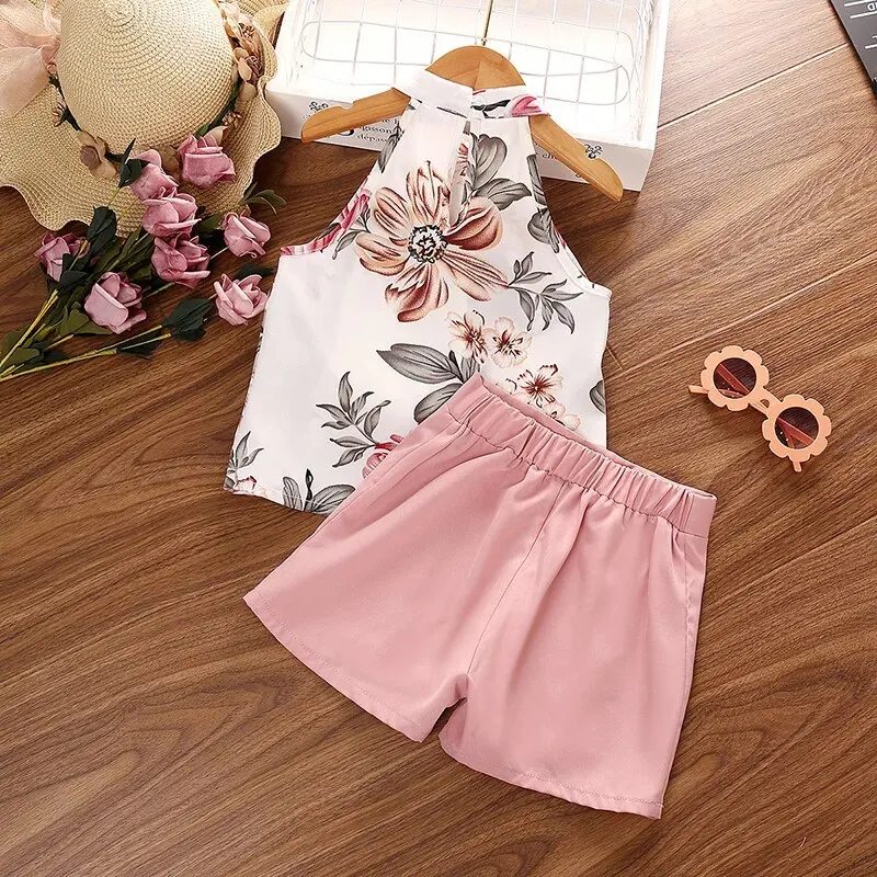 4-7 godina djevojčice s cvjetnim rukavima s halterom ružičasti setovi kratkih hlača za djevojčice Moda za svakodnevnu odjeću – DEČIJI KOMPLETI