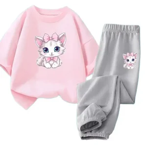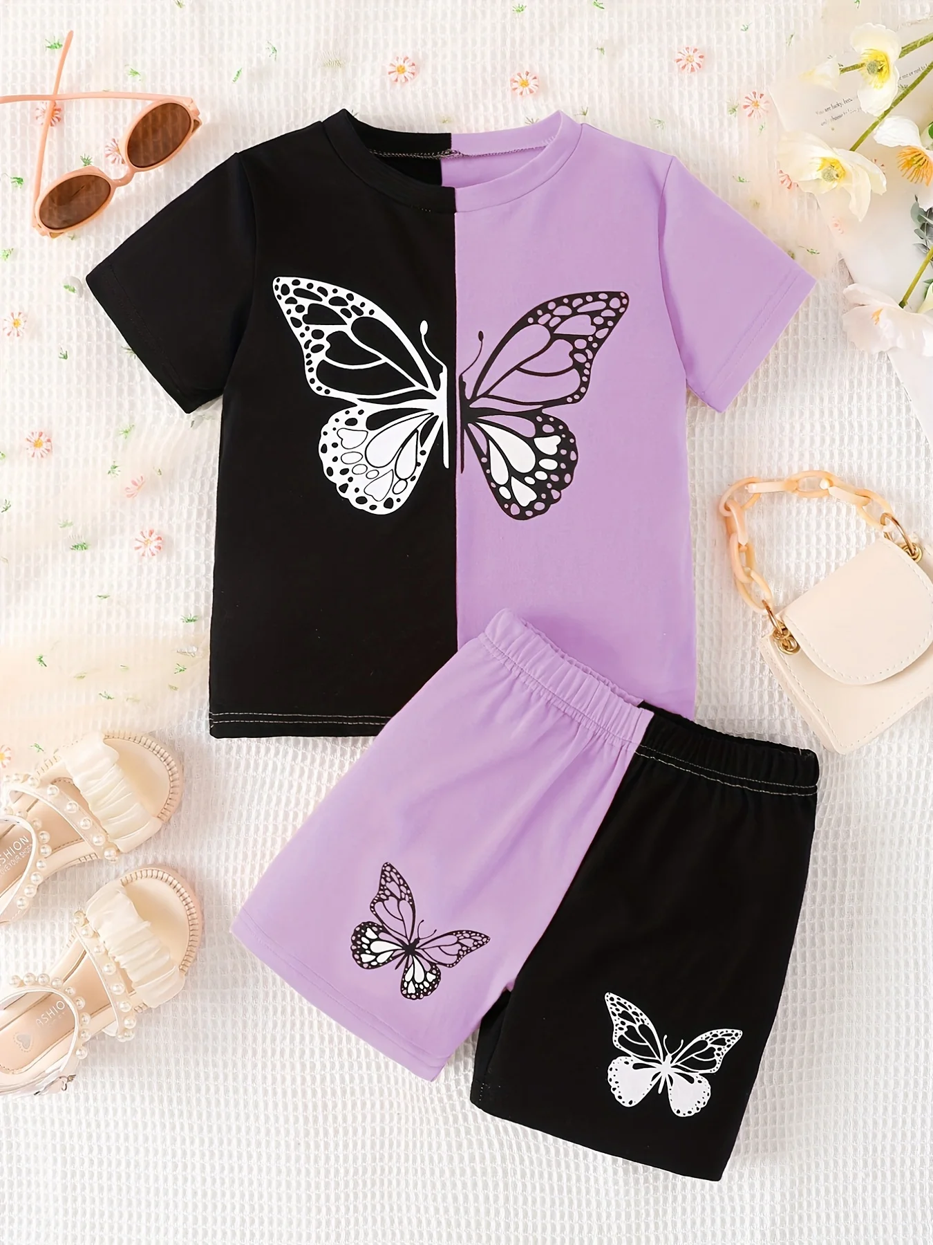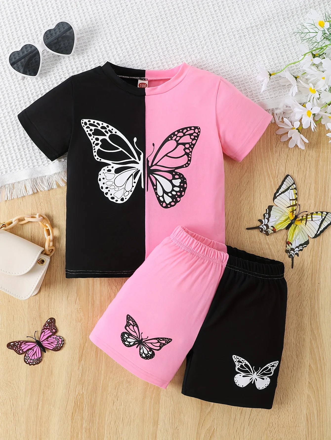 Djevojačka majica u boji Clash od 2 komada i set kratkih rukava majica s kratkim rukavima s crtanim leptirom Odjeća za djecu Ljetna odjeća – DEČIJI KOMPLETI