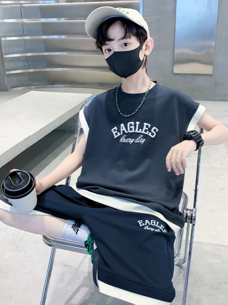 Ljetni set odjeće za tinejdžere Dječje majice bez rukava i šorc s pismom Dječje odijelo Pamučna gornja i donja trenerka – DEČIJI KOMPLETI