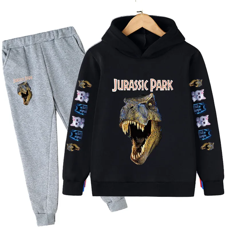 Nova modna dječija dukserica s kapuljačom Jurassic Park Dinosaur print dukserice jednobojne jesenske jednobojne dukserice – DEČIJI KOMPLETI